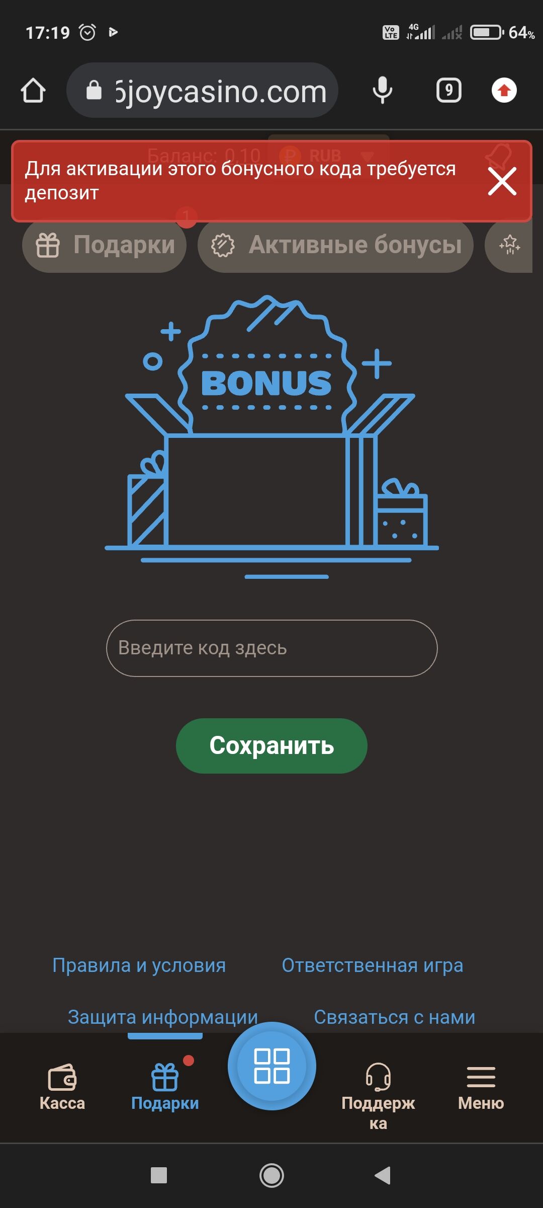 Не работает код ни в Джой не в х , депозит требуется