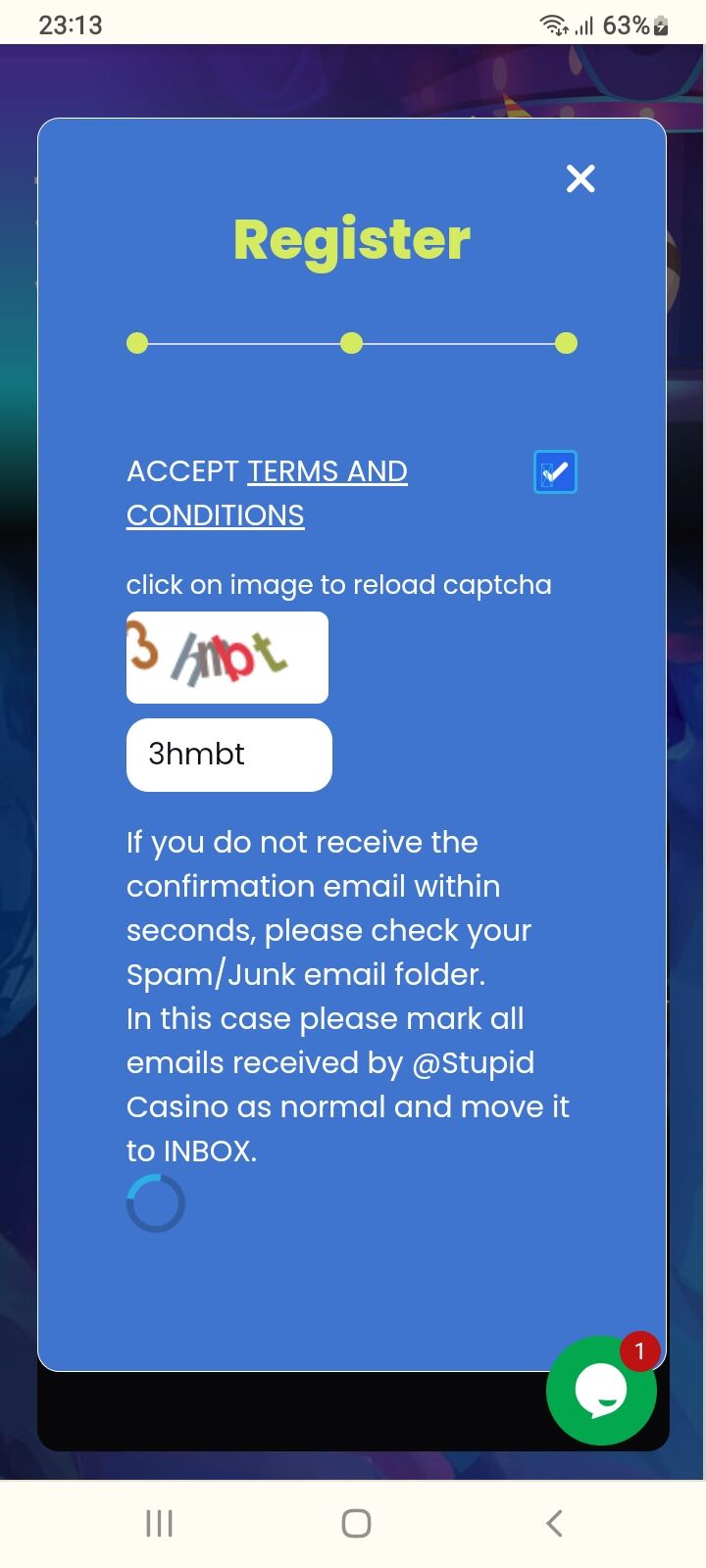 В этом глупомказино как зарегались?)У меня крутиться так минут 5,с другого тел также(