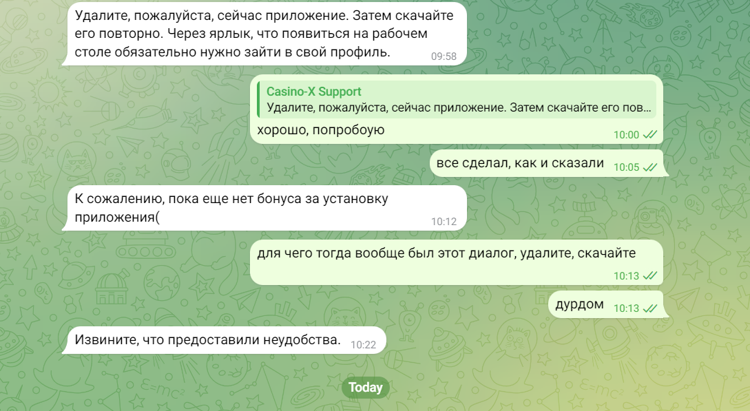 В иксе через саппорт в тг дали спинчики за установку андроида