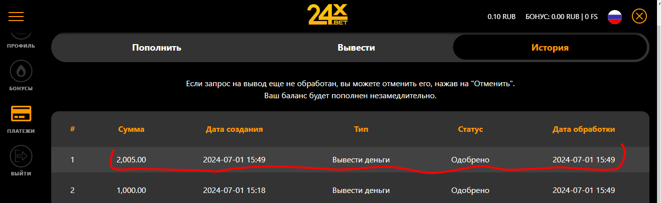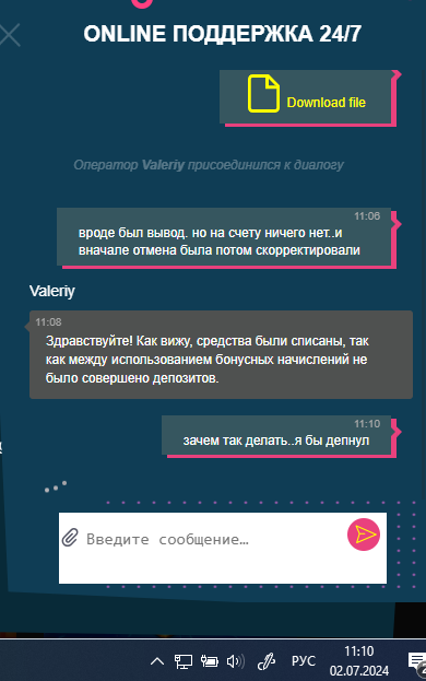 Забей на эту недоконторку, у меня тоже самое было. Пусть я депнул им после списания выигрыша. Меня все равно отключили от бонусов, а я аккаунт блокнул да и все дела.