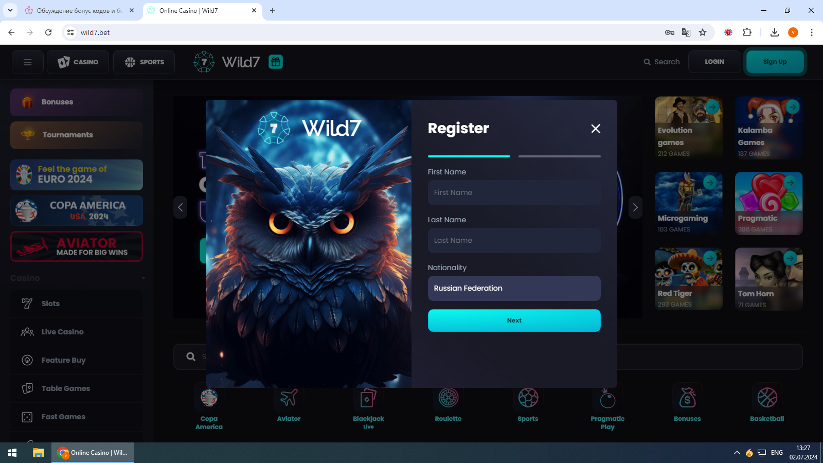 wild7 точка bet 5 долларов фрибет за верификацию по паспорту без селфи-вейджер х20 с минимальным кефом 1.8.