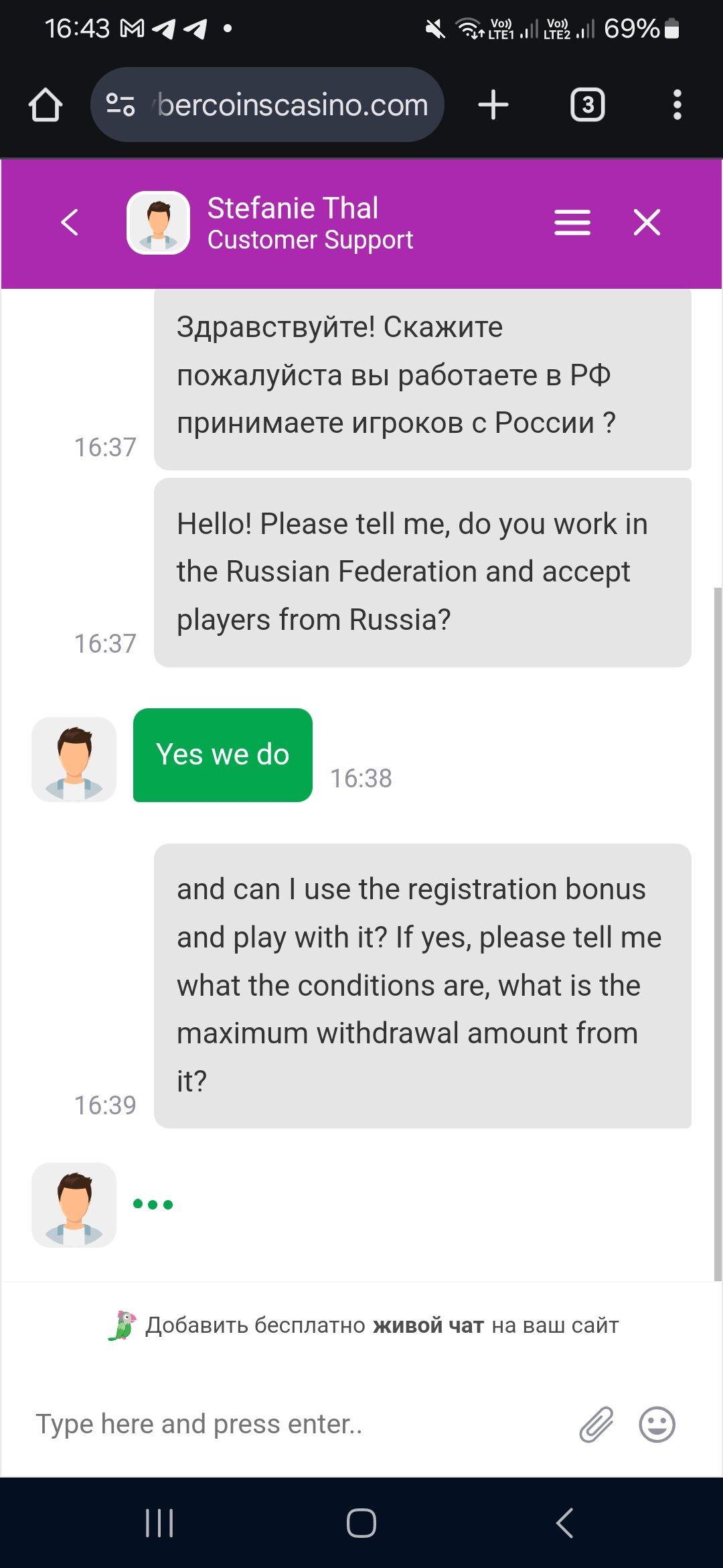 Короче хз поддержка в чате написали играть с РФ можно так же на бонусные, макскешаут 1к€ с них, вот провайдер, слоты не понял, не нашёл в какие играть можно на бонусный баланс, в топовых провайдерах запрещено.