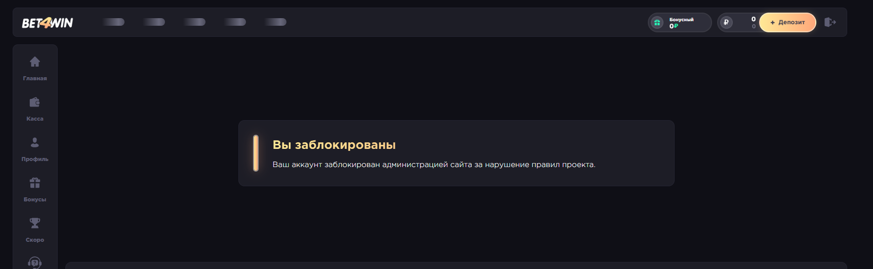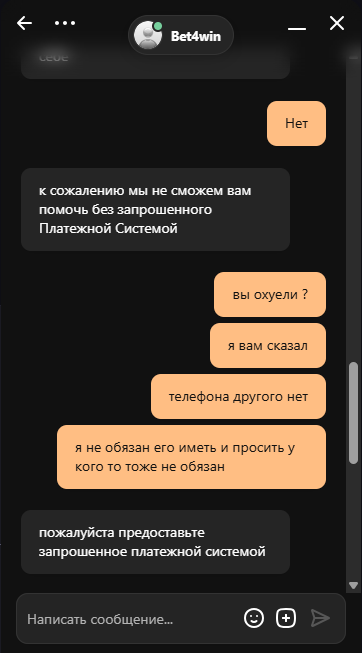Вот и весь bet4win. Я отказался предоставлять видео с другого телефона, так как у меня его нет. Итог: -66к и блок.аккаунта