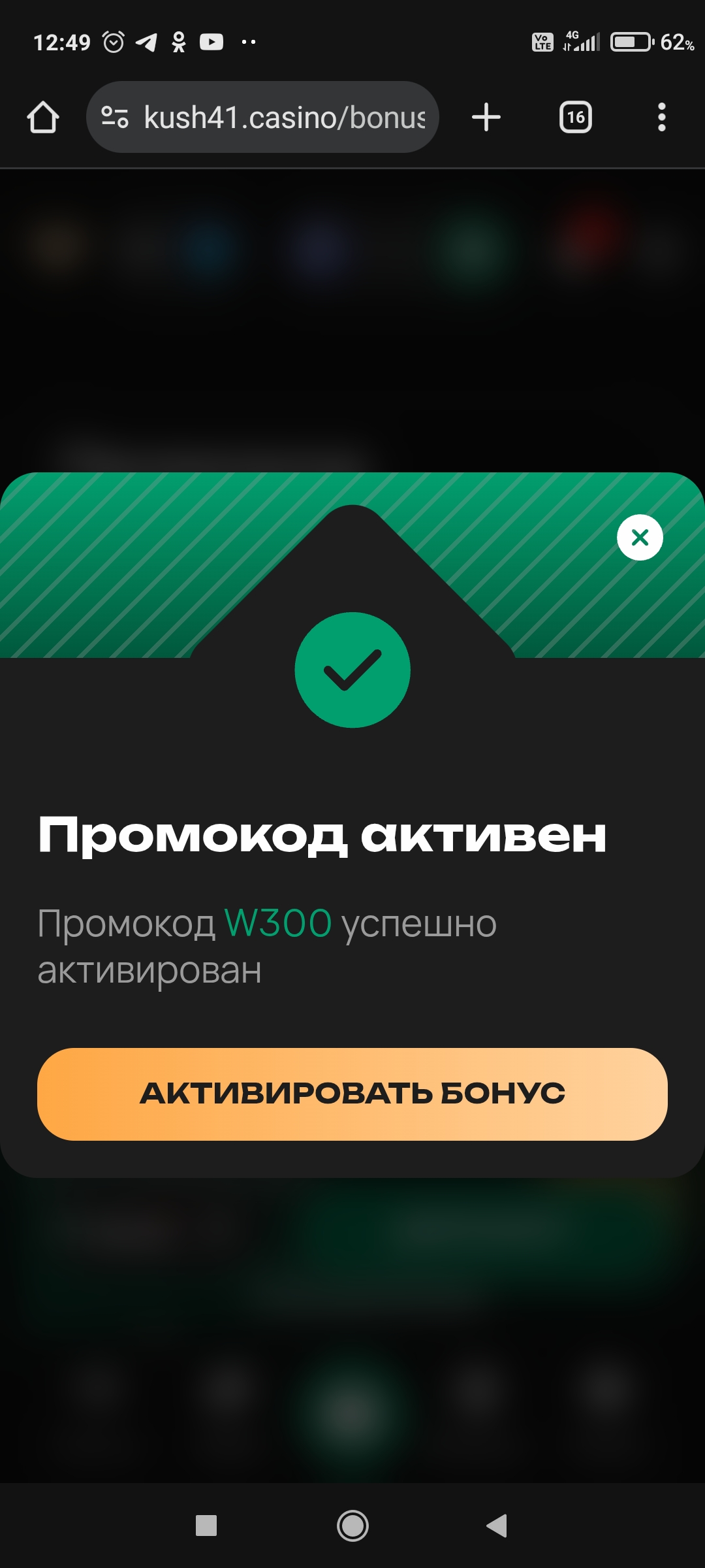 @lana888 спасибо большое. Странно что даже еще и успел его активировать, да еще слот норм и вагер всего х10.