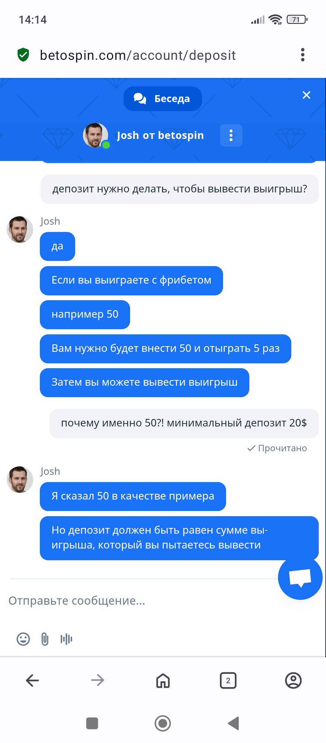 @barondopampum шляпа это,условия похожи на развод на депозит. Чтобы вывести выигрыш с фрибета,нужно сделать депозит равный или больше самого выигрыша и открутить 5 раз. Если допустим поднял 100$ с этого фрибета, нужно сделать депозит 100$ и оборот 500$