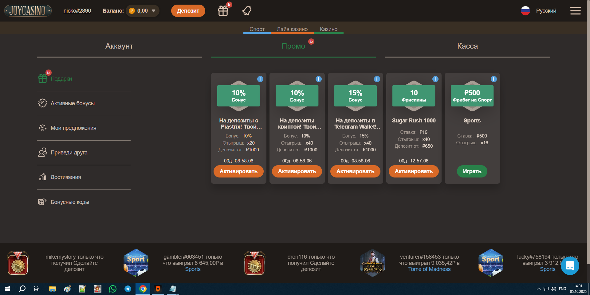 фрибет в джой висел, чайкайте аки, депов давно не делал…
