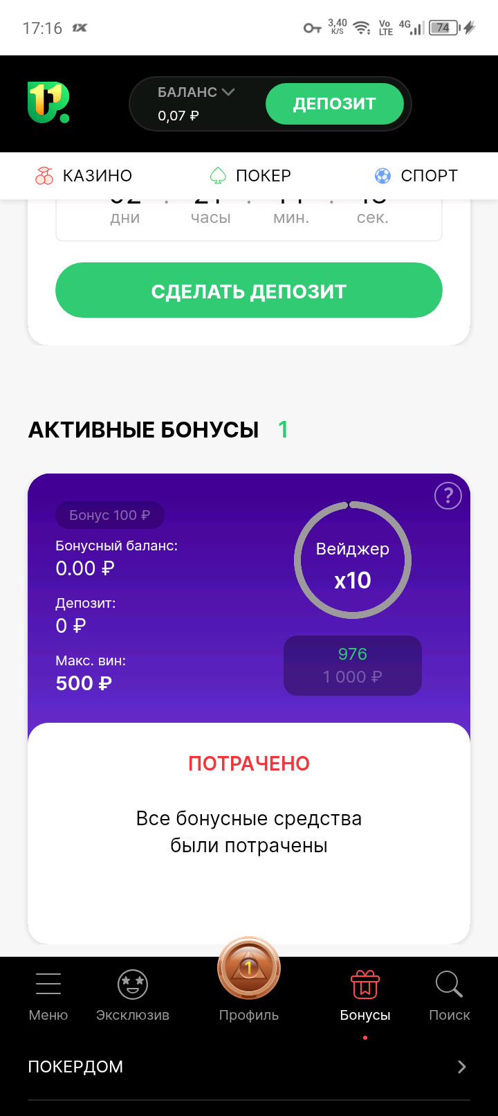 @nikolay_ это же Push gaming, там где в эндорфине нет пробития карт…. Единственная сетка где такое говницо…. Я к примеру вообще больше не делаю в эти шарашки больше принципиально 😏