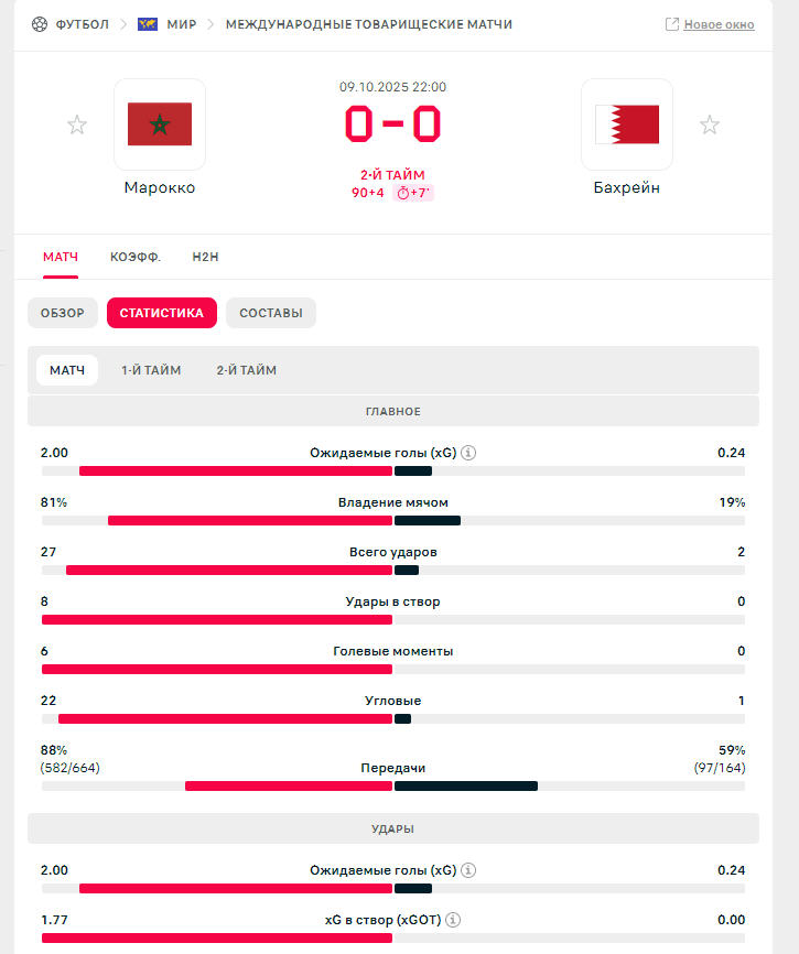 @sinaloa А меня вот эти прокатывают. 27 ударов, 8 — в створ, 22 — угловых и ноль голов. Что еще вам надо, чтобы гол забить. Пока писал, забили!