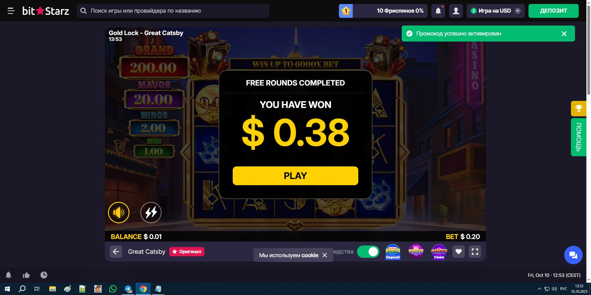 Если кому интересно то там в ТГ на канале Битстарза скоро разместят код на бездепозитные фриспины, когда соберется 300 реакций на пост.