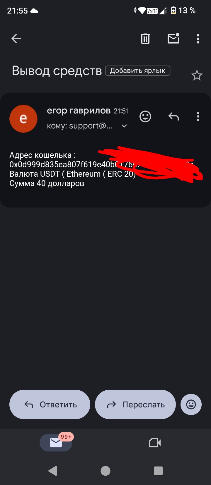 После на почту вот это. Вернуться в чат для подтверждения и уж потом ставить выплату