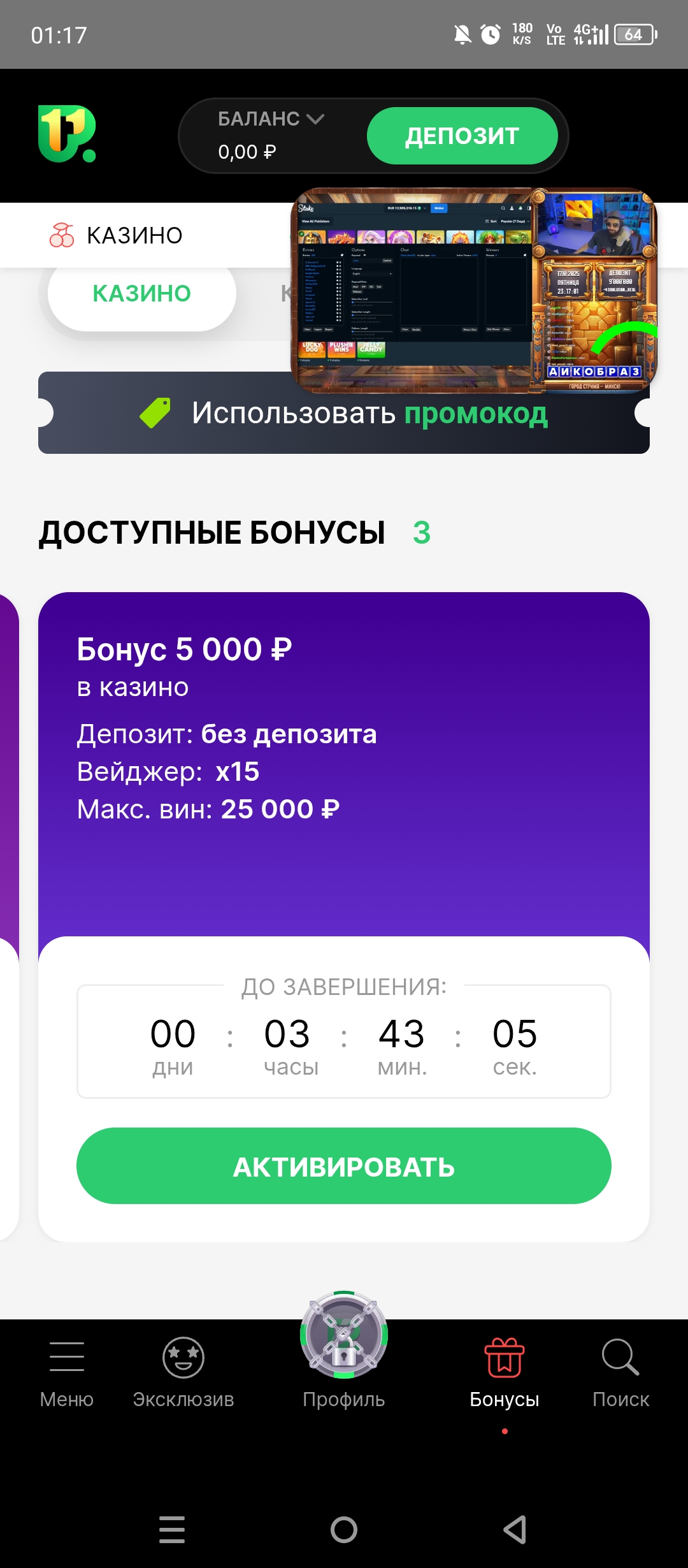 @x10000 они пытались меня развести на депозит любыми способами. А я пытался их развести на хороший бонус. Пока никто не выиграл, ничья 1:1😄