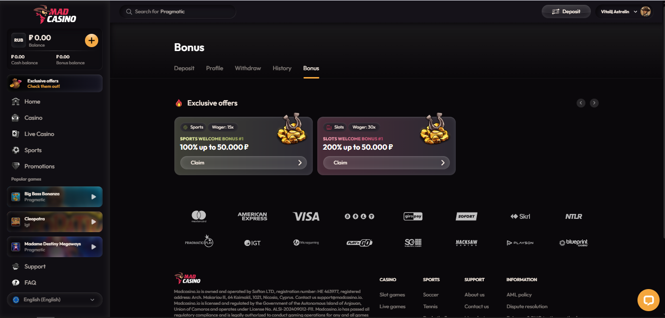 @vitaldeluxe это вообще не то казино))) нужно mad точка casino