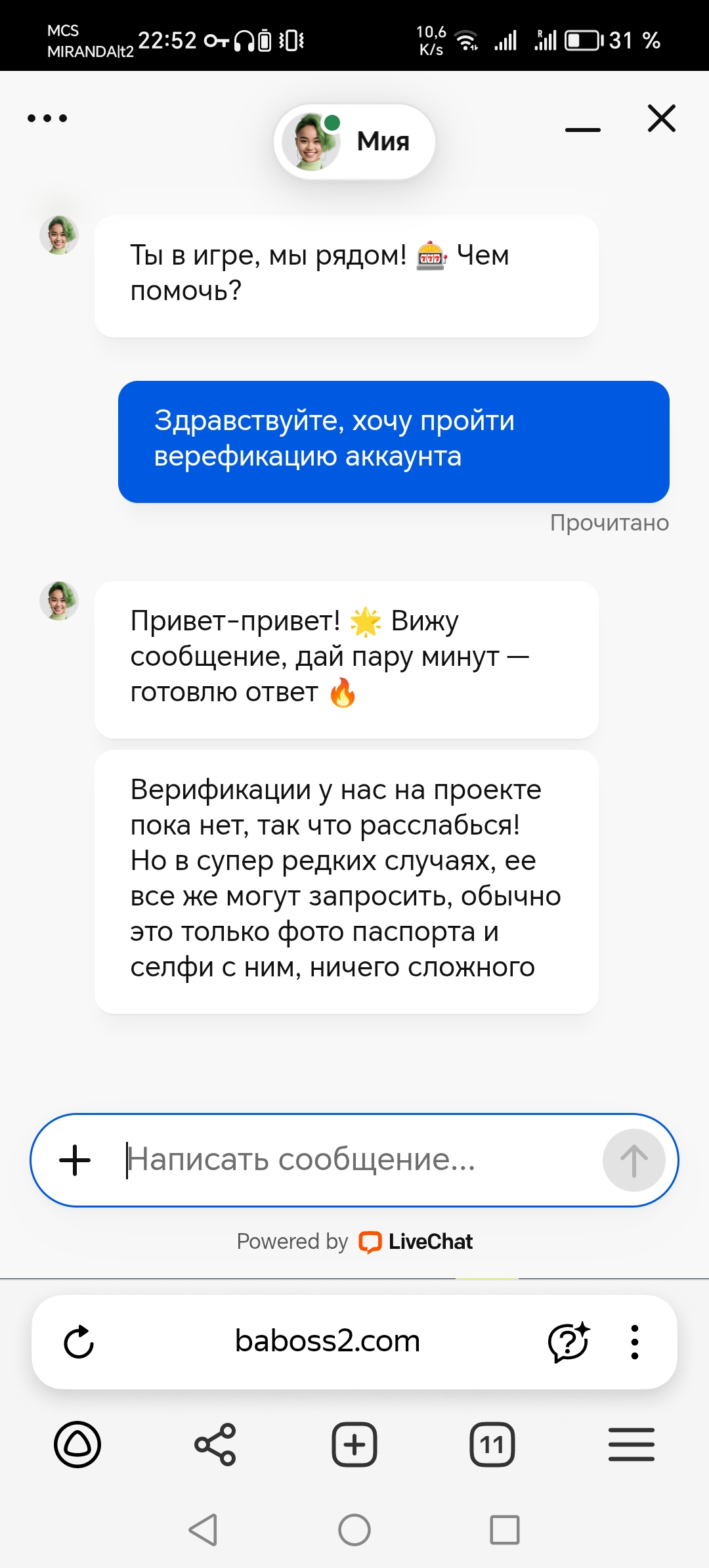 @ksanavegas94 @ksanavegas94 а мне в поодержке сказали что верефикации нету))