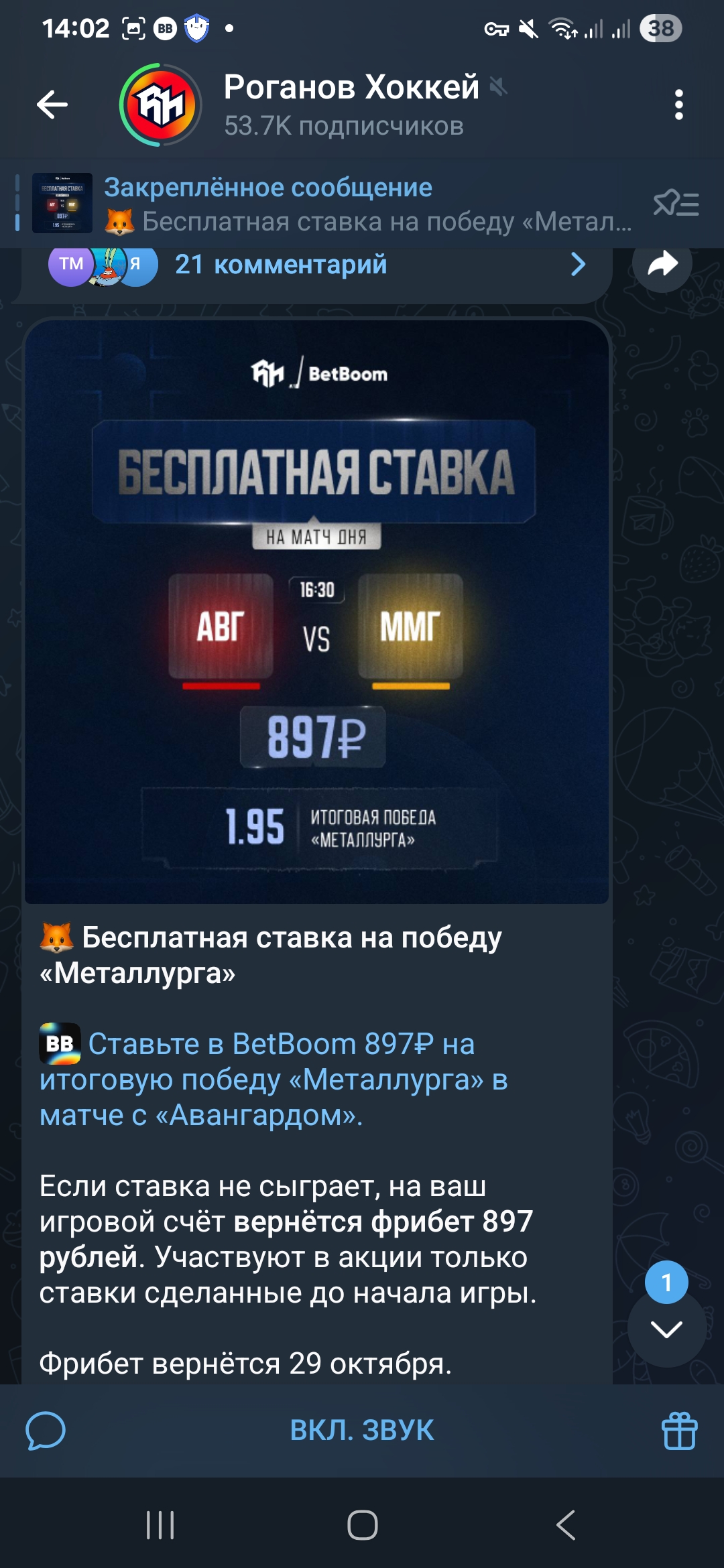 @z1vert а ты её и не увидешь от тг канала рогонова, выполнить в точь в точь условия и ты автоматически участвуешь в ней, неоднократно участвовал всё ок, сумму ставки ровно до копейки ) не рублём больше ни меньше и итоговая победа, а не в основное время .