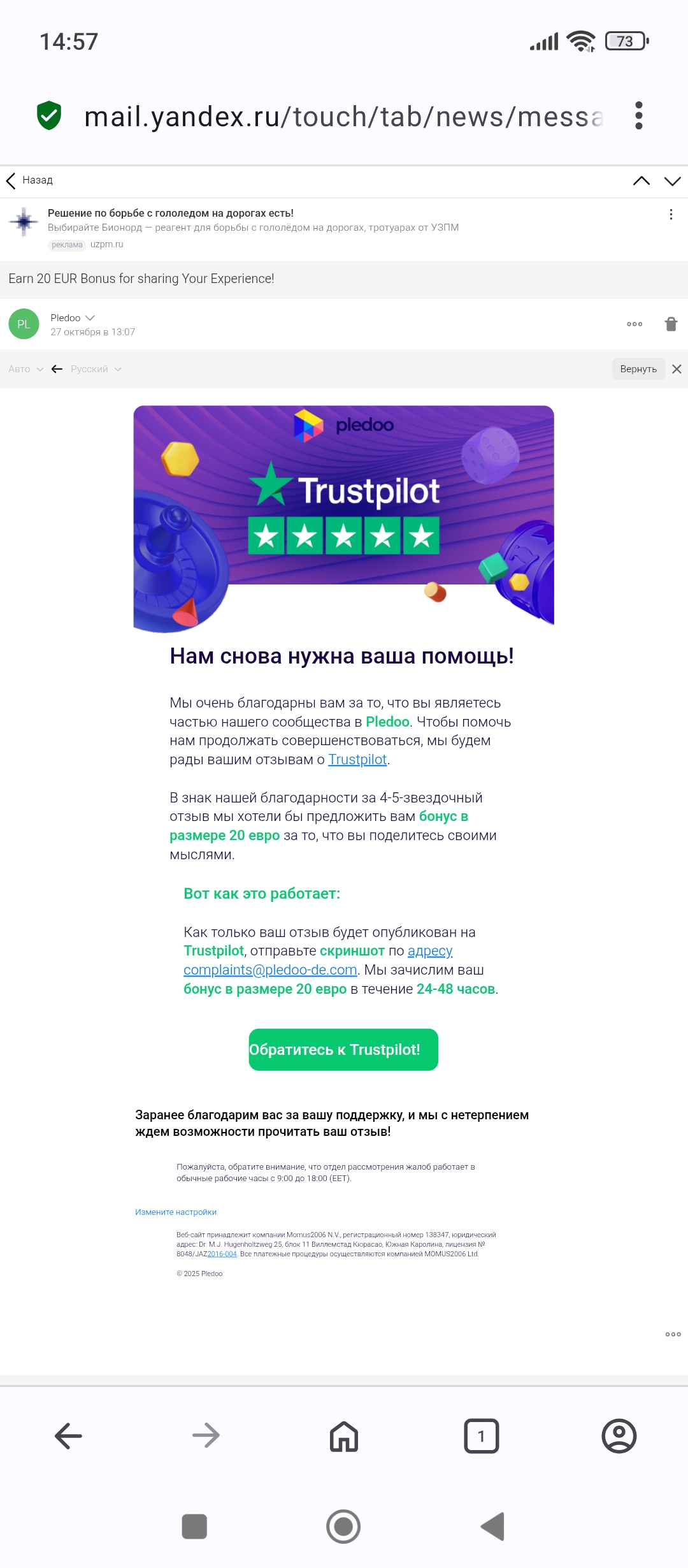 И ты скрины кидал на complaints собака pledoo точка xyz ?