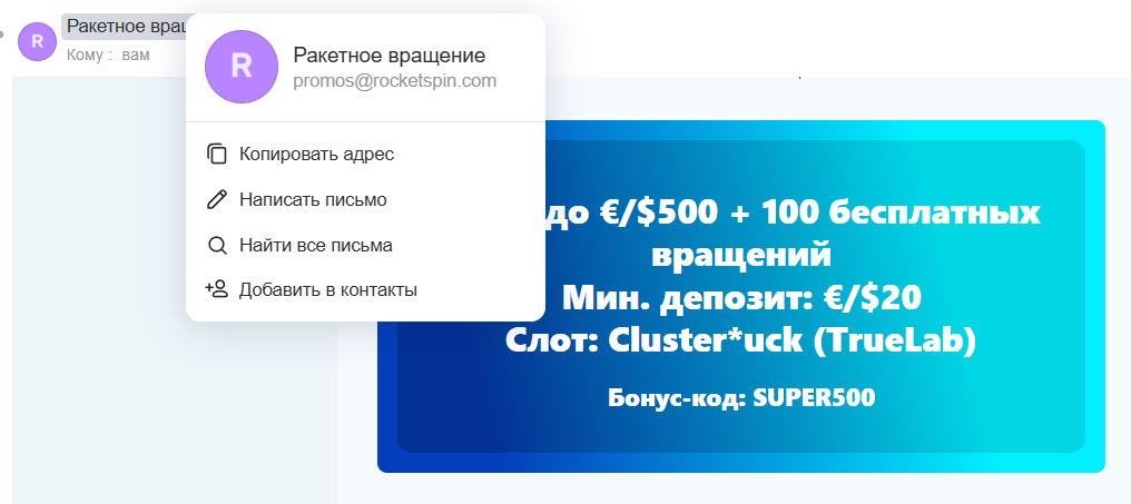 Кто помнит казик рокет спин, что то я припоминаю, в истории депов и выводов нет, история игр есть, прислали — Внесите депозит на сумму от €/$20, введите SUPER500 и получите бонус 500% до €/$500, а также 100 бесплатных вращений на Cluster*uck.  казик похож на спин джо, там я выводил с бездепа, но этот рокет спин хз….