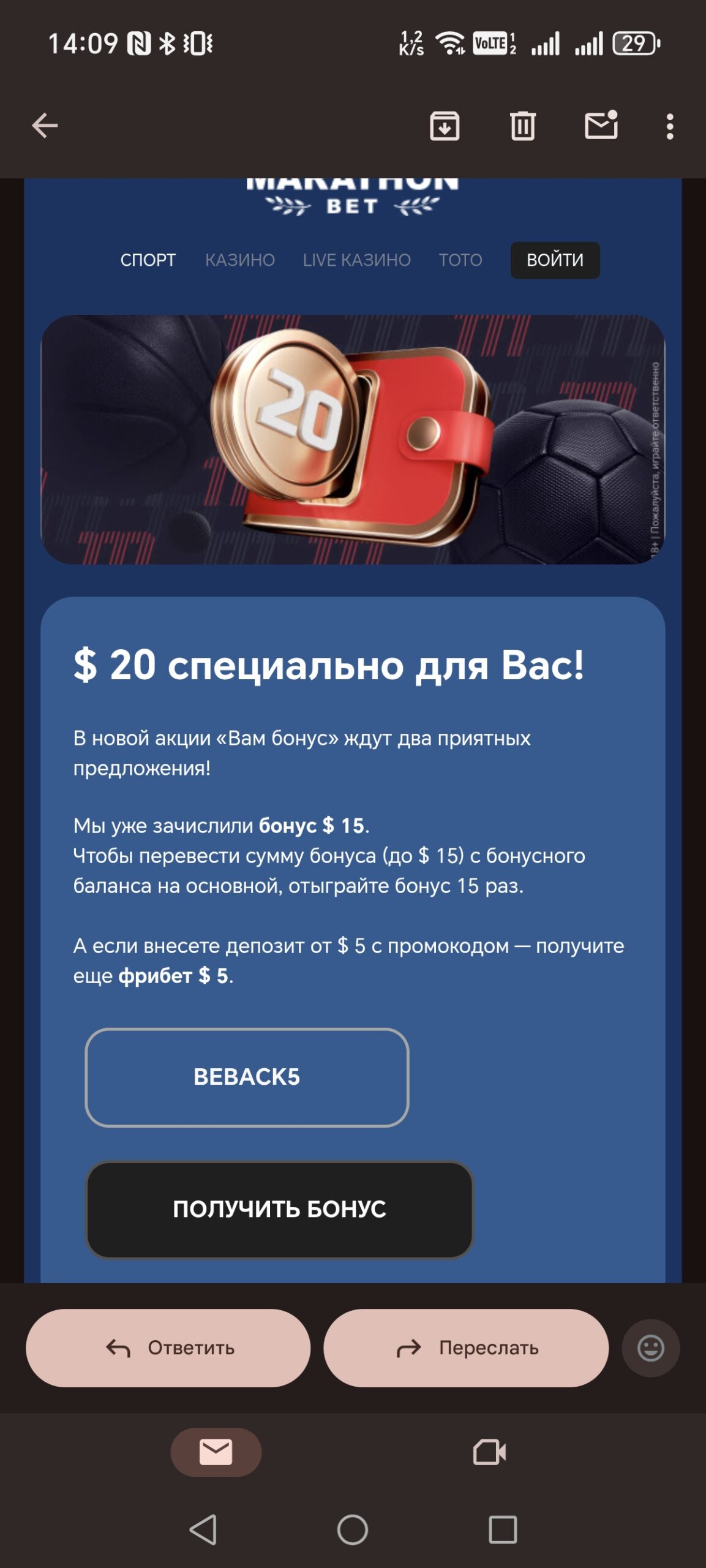 При том странно что, в письме вагер х15, а на сайте х10