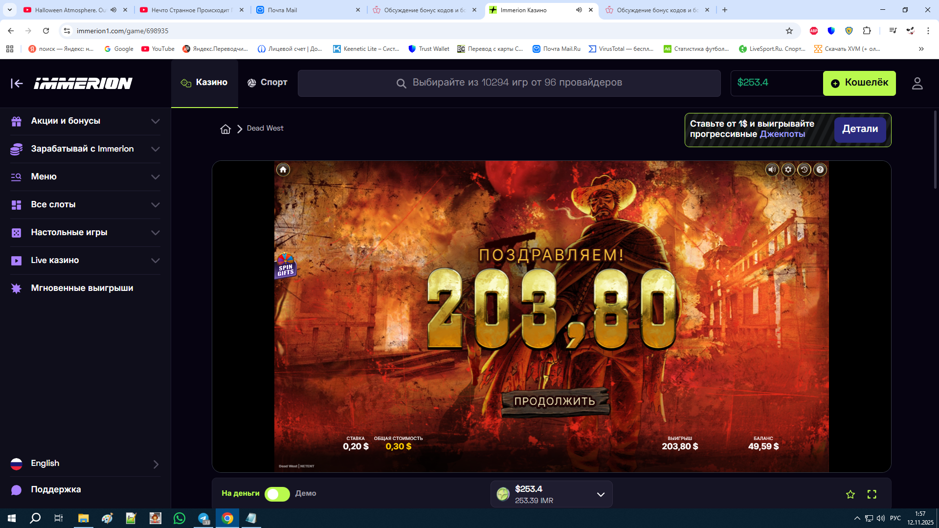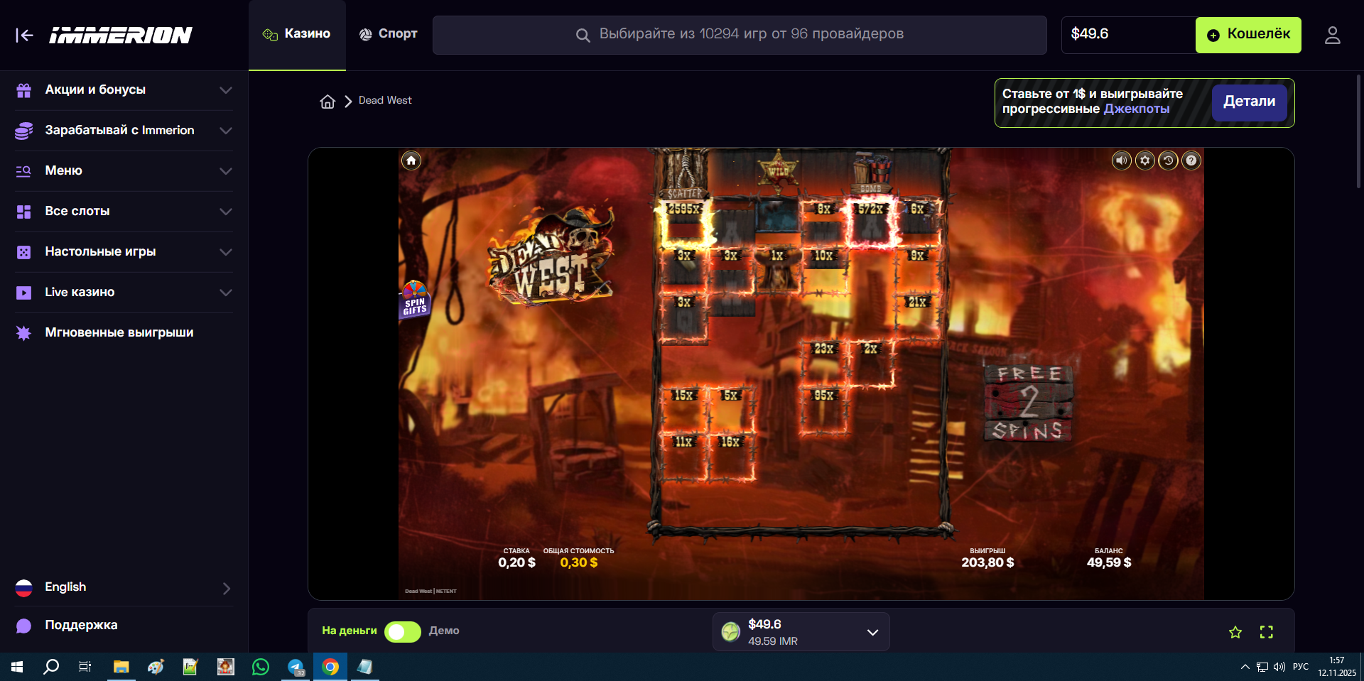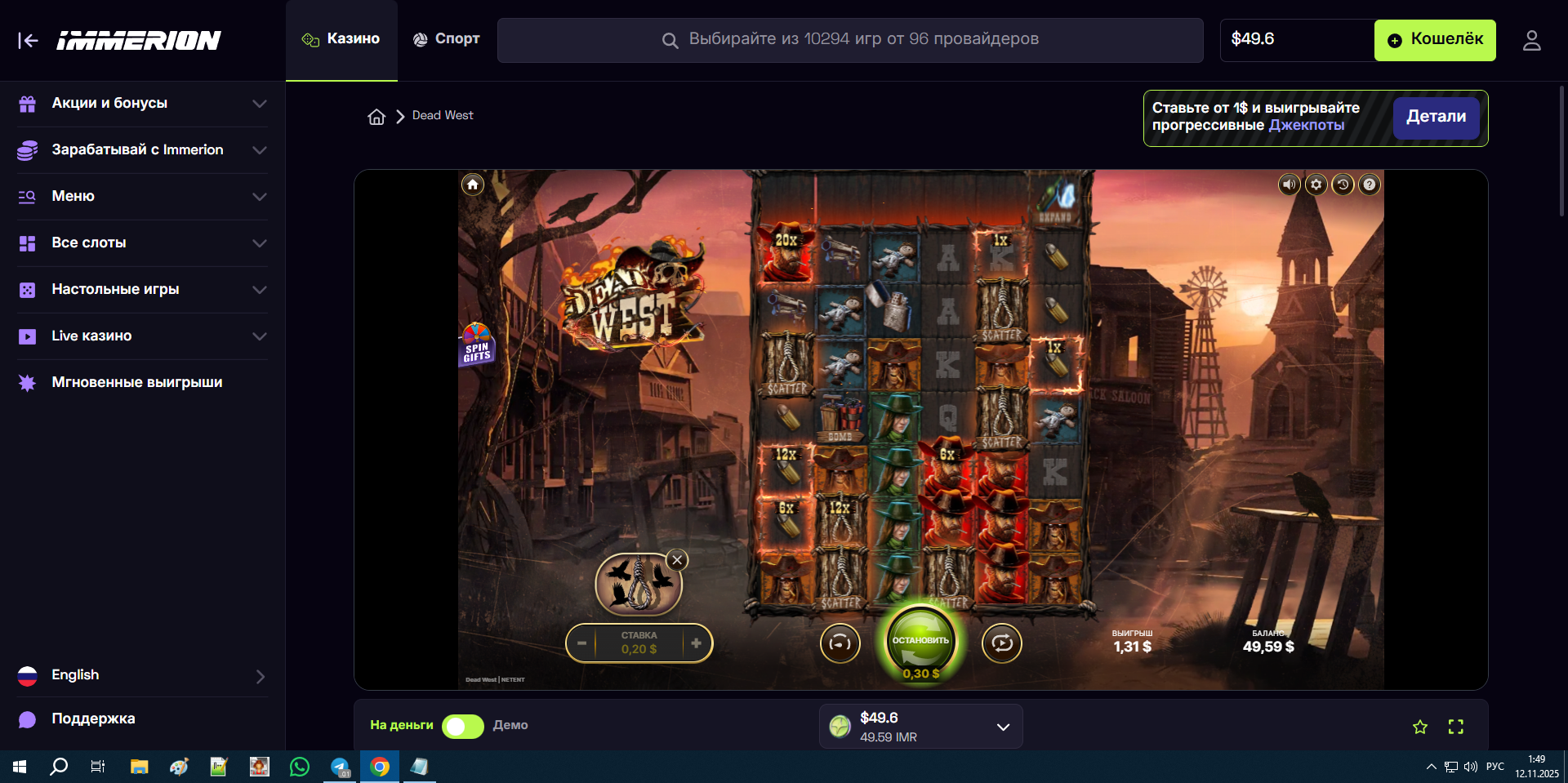 Совсем забыл про 4 каз, иммероион, ща открутил там фрихи, дали 16$ это рекорд в их сетке, но самое прикольное что поймал бонус в слоте который уже давно кручу, столько виселиц еще не ловил, это походу максималка…)