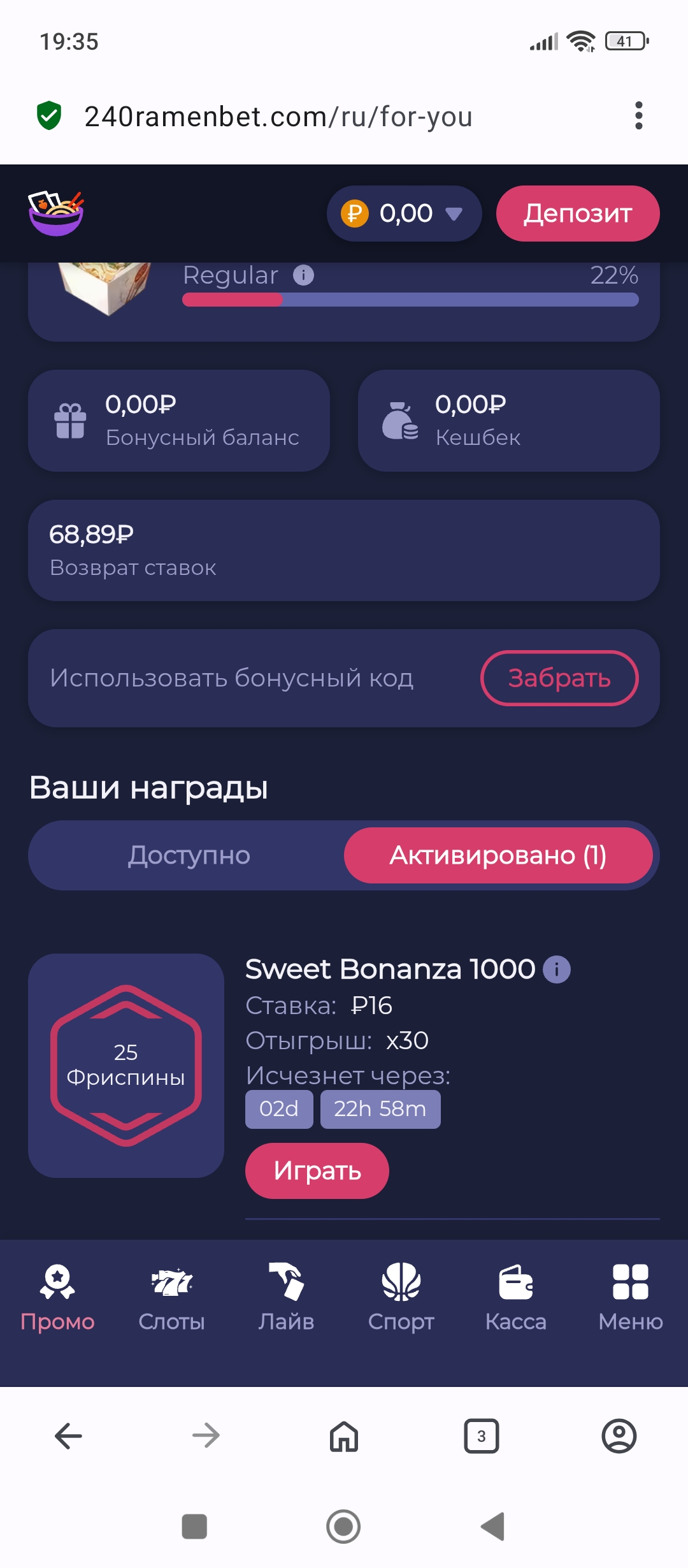 от раменбет пришо 25 спинов по 16р проверьте аккаунты