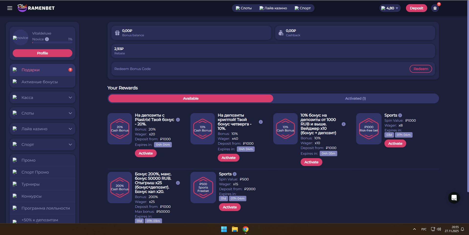 Обсуждение бонус кодов и бонусов в казино