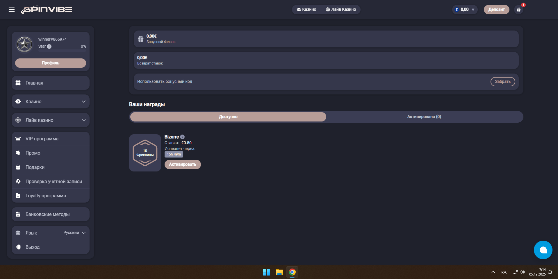 Промо SP50C в разделе бонусы, после реги, чтобы не теряли времени объясню всё сразу. Вообще фриспины должны типо зачисляться в слоте book of dead, но их там нет, фриспины после активации промокода проверьте в слоте Wild Tiger (Bgaming) можно с винни (вывели без проблем, без внесения депозита) рега Россия — добро, номер телефона подтвердить не надо, можно даже наугад какой нибудь при реге) Все данные заполняются на английском, после отыгрыша верифать надо доки до 48 часов проверка. Только паспорт и выписку из банка грузил в разделе верификации верифнули без проблем и вывели. Вообще х10 макс вывод на сумму с фриспинов, но урезали после одной заявки, по правилам 50€\$ , не рискнул прятать (ведь баланс был реал уже) хотел проверить выводы. Выводы тоже до 48 часов подтверждение.
