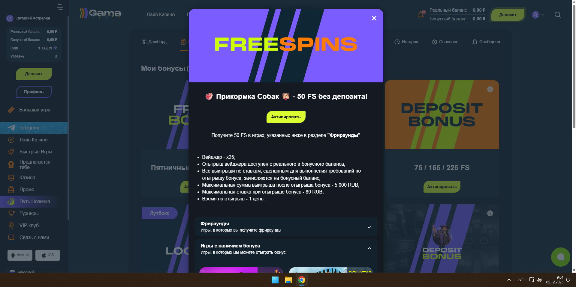 в Gama казино тоже 50фс
