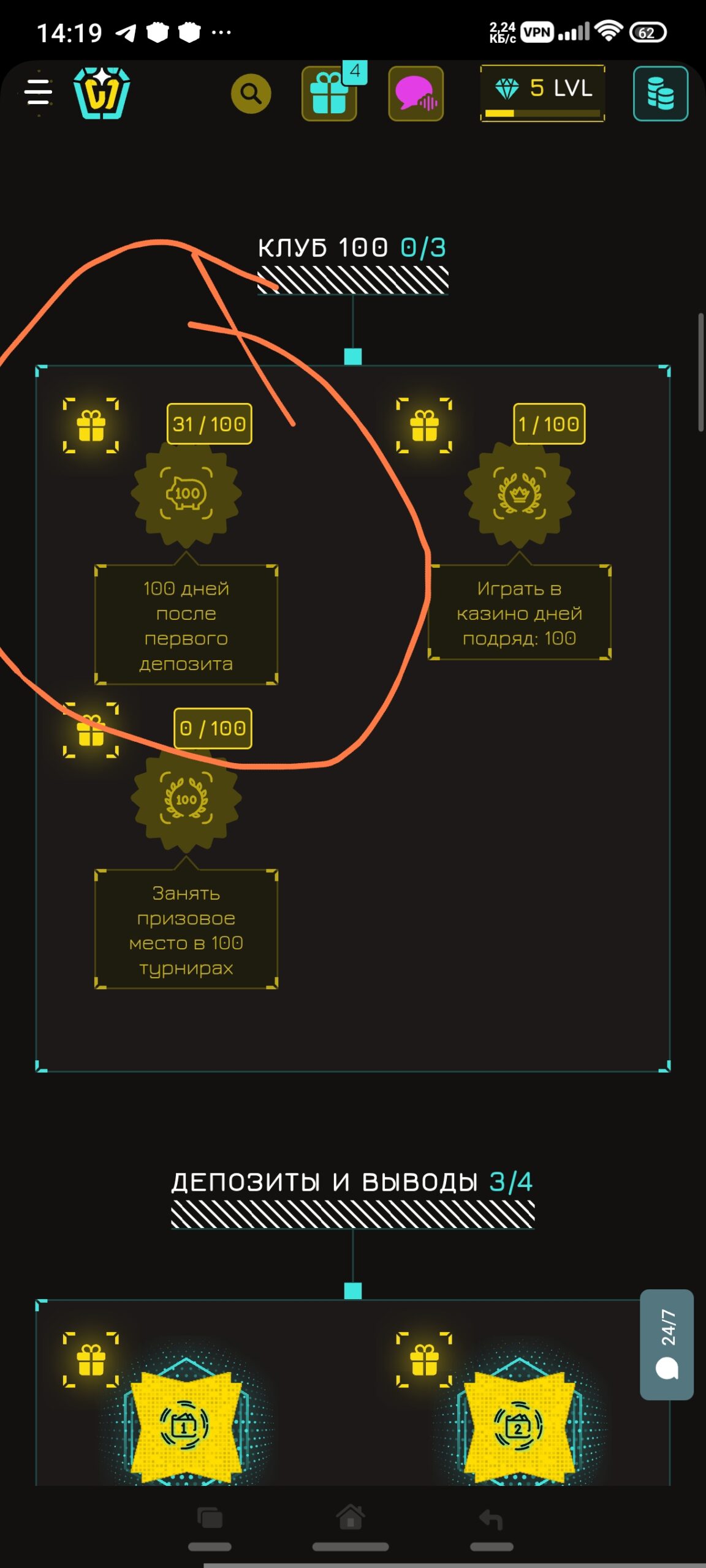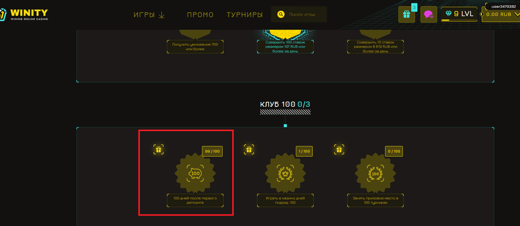 в достижения зайди там всё указано,в том числе и сколько дней осталось до этих 100 спинов