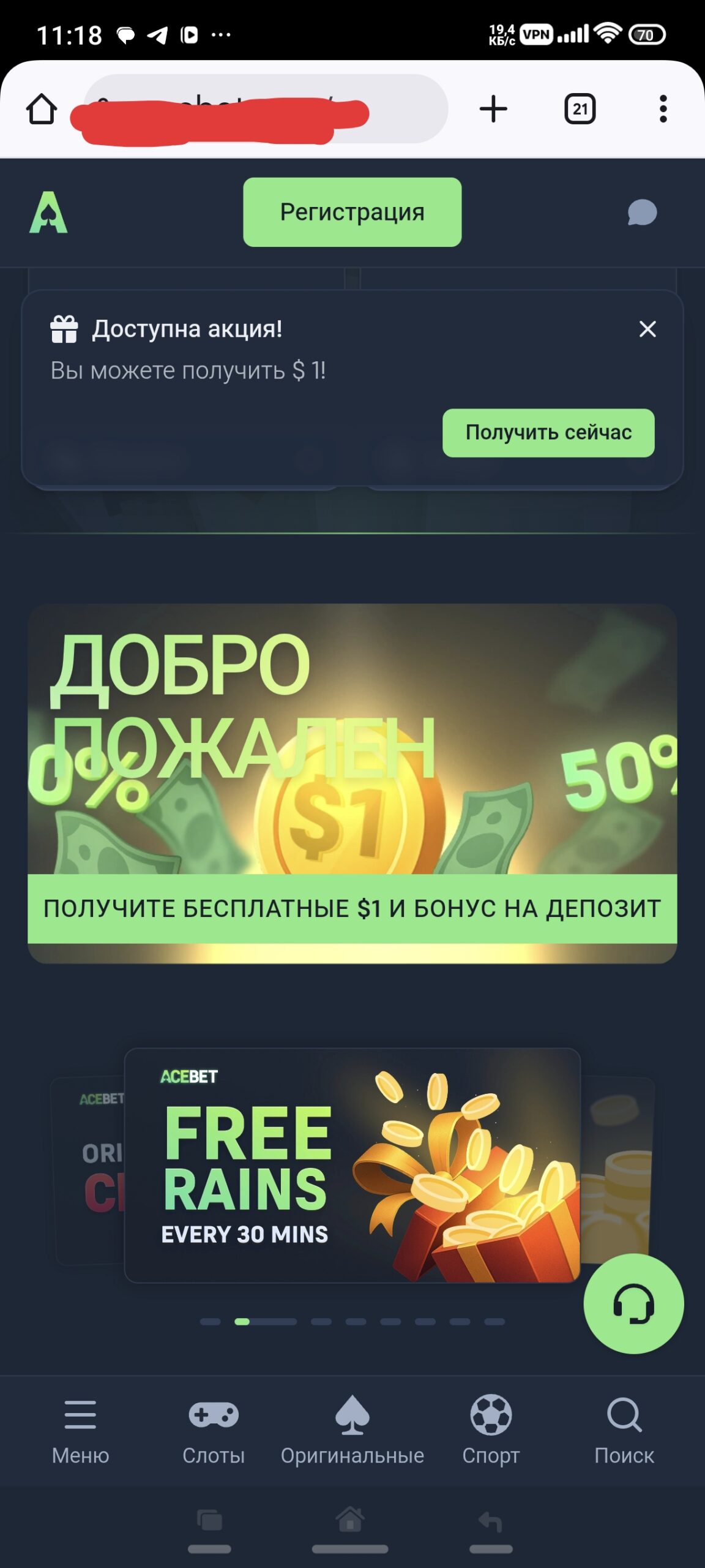 привет всем. я нашел сайт acebet точка com дают 1 доллар за регу и вейджер х1. Вывод с бонуса от 50 долларов и более. Пробуйте.