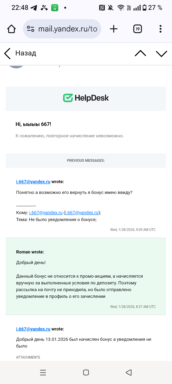 @glassman Конечно, это же бездеп с отмытием за бонусные, нах… о таком уведомлять! Мы вам лучше почту засрем всяким г…ом.