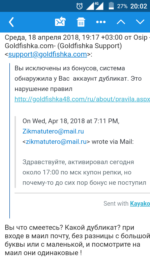 Вчера внес мин депозит через КИВИ, покрутил слоты… подслился потом почти вернул то шо проиграл, но типа остался в общем минусе решил поглядеть как они изменят уровень (за сделанные ставки если вчера не выиграл и конечно не выводил). Но оказалось ни чего не изменилось, только дали бонус за ставки. Попытался написать вопрос через сайт но почему то выдавало ошибку при заполнении своей элпочты. Тогда написал письмо… Ответ удивил, оказывается теперь у них «уровни растут раз в месяц» , а за почту предложили «поменять браузер»