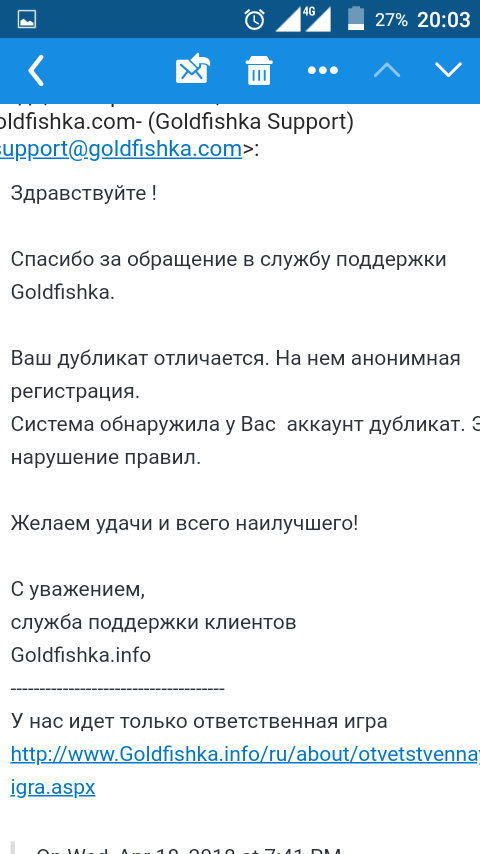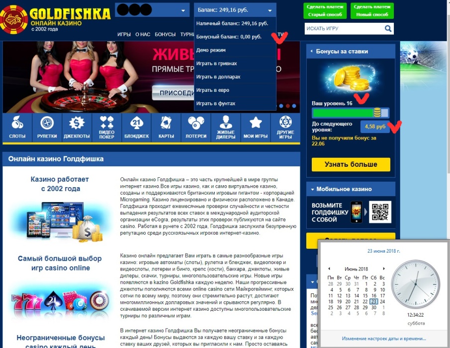 Но пока я удивляюсь на суппорт ГолдФишки… уже который день задаю всего один вопрос по чему 13 июня у меня был 16 уровень и до следующего (17) уровня оставалось 70 копеек , а 14 июня после сделанных ставок (более чем 200 рублей) у меня остался тот же 16 уровень, но самое не главное и непонятное что сумма до следующего уровня не уменьшилась а увеличилась и стала аж 2,80 руб.