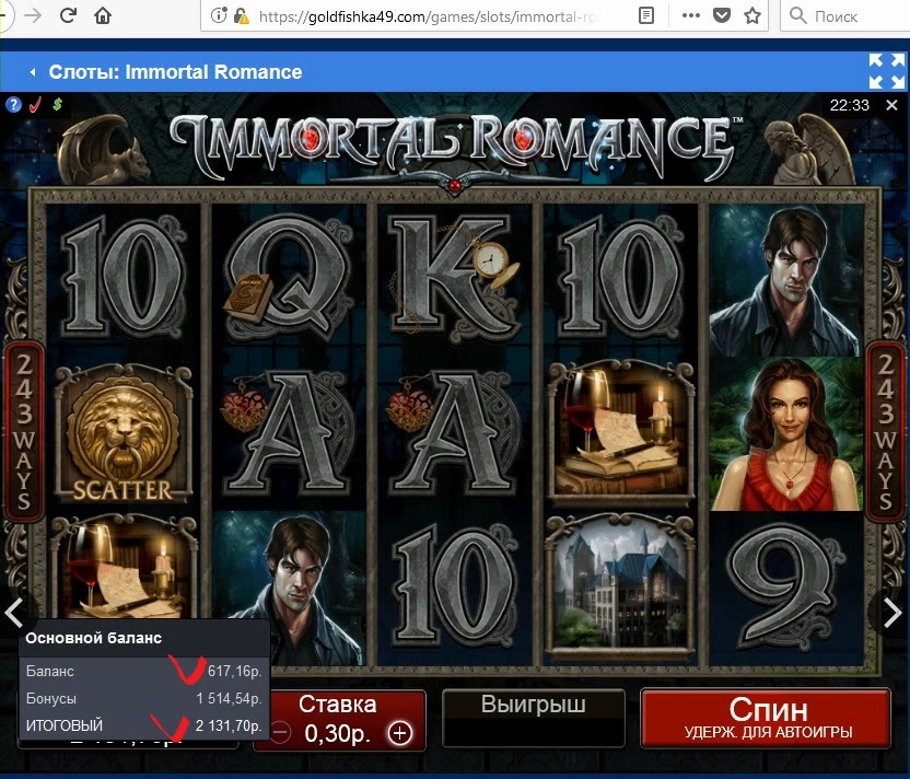 Я в понедельник взял бонус за знания 120р и пошел в иммортал,с первых спинов по 3 р выпала бонуска на 600+ рублей,потом крутил его и плейбой почти все слил,опять пошел в иммортал,поднял ставку до 6р,слил до 200 и решил плюнуть и докрутить по 15р за спин.И с первого спина выпала бонуска на 4,5 к,а следом с небольшим интервалом еще две.В итоге поднялся до 8к и благополучно поставил на вывод.Два дня подождал,хотя думал что будут тянуть все три дня с выплатой.Все равно гф иногда умеет радовать.Это одно из немногих казино в которых я в плюсе.