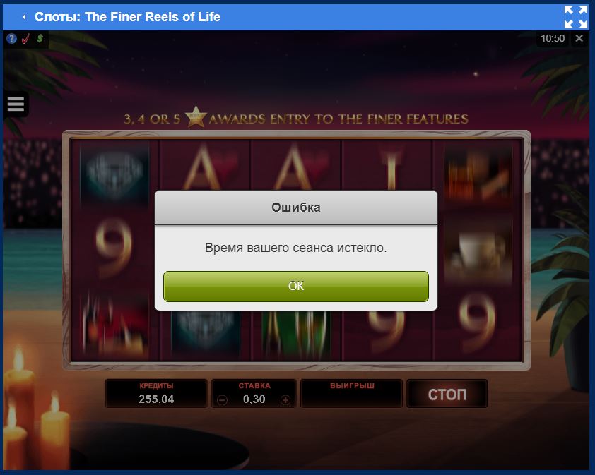После того как вывели выигрыш, депнул еше 250ру… И пошел «гудет» по слотам, первый попался слот «The Finer Reels of Life» и пошла жара… Сыграл по «мизеру» минут 15 немного поднялся, а потом ОПС… Выдало ошибку типа слоты не крутил, а тупо пошел… «покурить») Тогда вышел из этого слота а черем пару минут выжу чел затянул 40К на этом же слоте😎