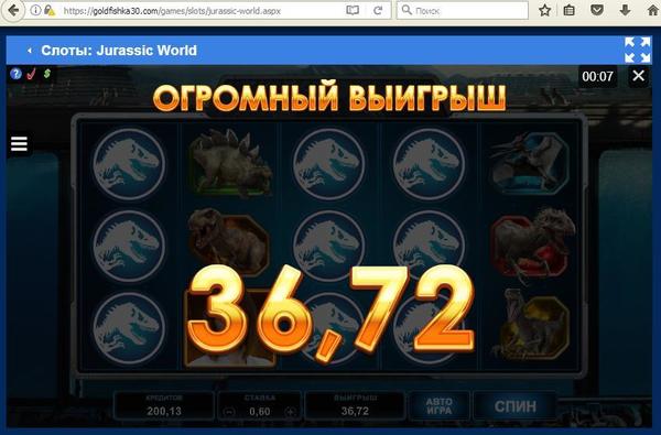 25 спинов по ставке 6 рублей за депозит от 1500 до 2999 рублей в Jurassic World