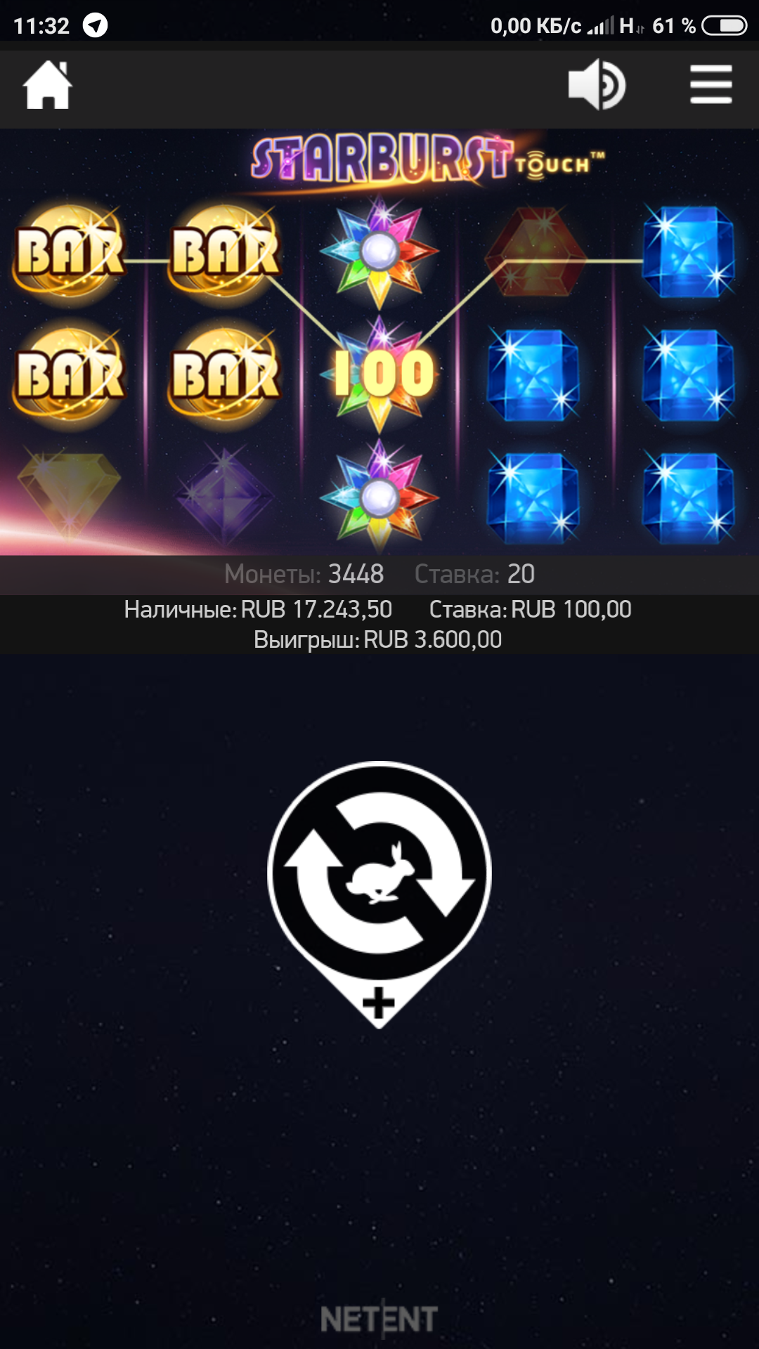 Риобет сегодня на днюху порадовали бонусом 2400 руб с вагером 29. И Макс выводом 11700. Успешно отмыл. Сначала иммортал дал бонуску на х100 по 30. Потом линию неполную сар с вилдами дал по 60 руб на х100. Далее старберст по 100. Пару часов и отмыто 60 к руб. Старберст играл неплохо. Нескринил особо…