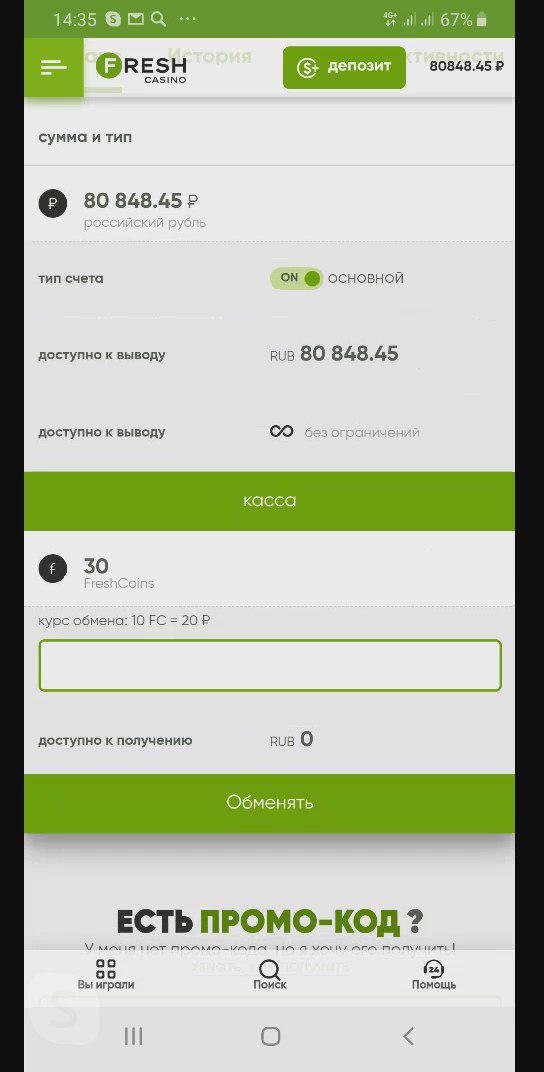 вчера была днюха. получил 3к во фреш казино подарок вагер был 150к. играл играл поднялся и в эндорфине бонуска неплохая и на пробитии поставил 2ку. там угадал потом в елк в цирк респин отмывал по 200р ставку баланс хорошо держало и в валькирию с 1 спина бонуска от них же тоже 30 с чемто к дало. по итогу 81к на вывод. ограничения с этого подарка на вывод нету