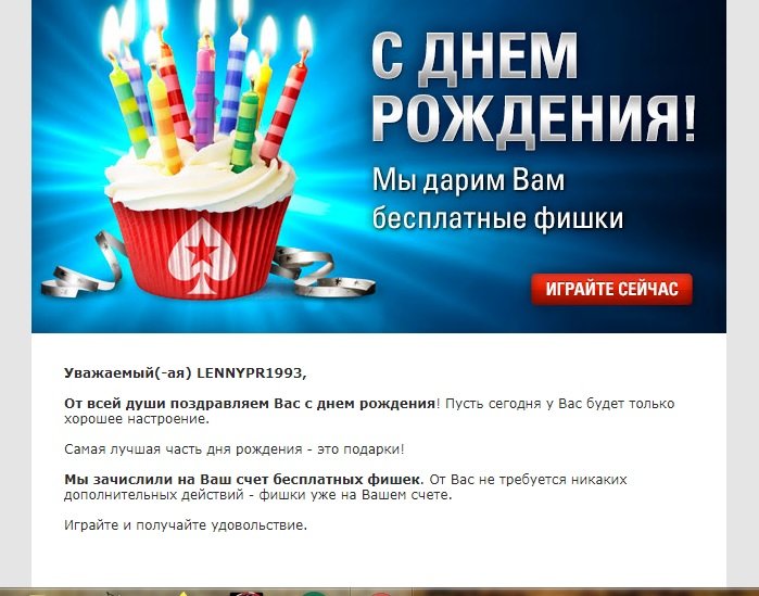 4) Винрейт предложил бонус на депозит от 20 фишек. Пока не воспользовался, думаю. Говорят, что действует 14 дней после ДР.