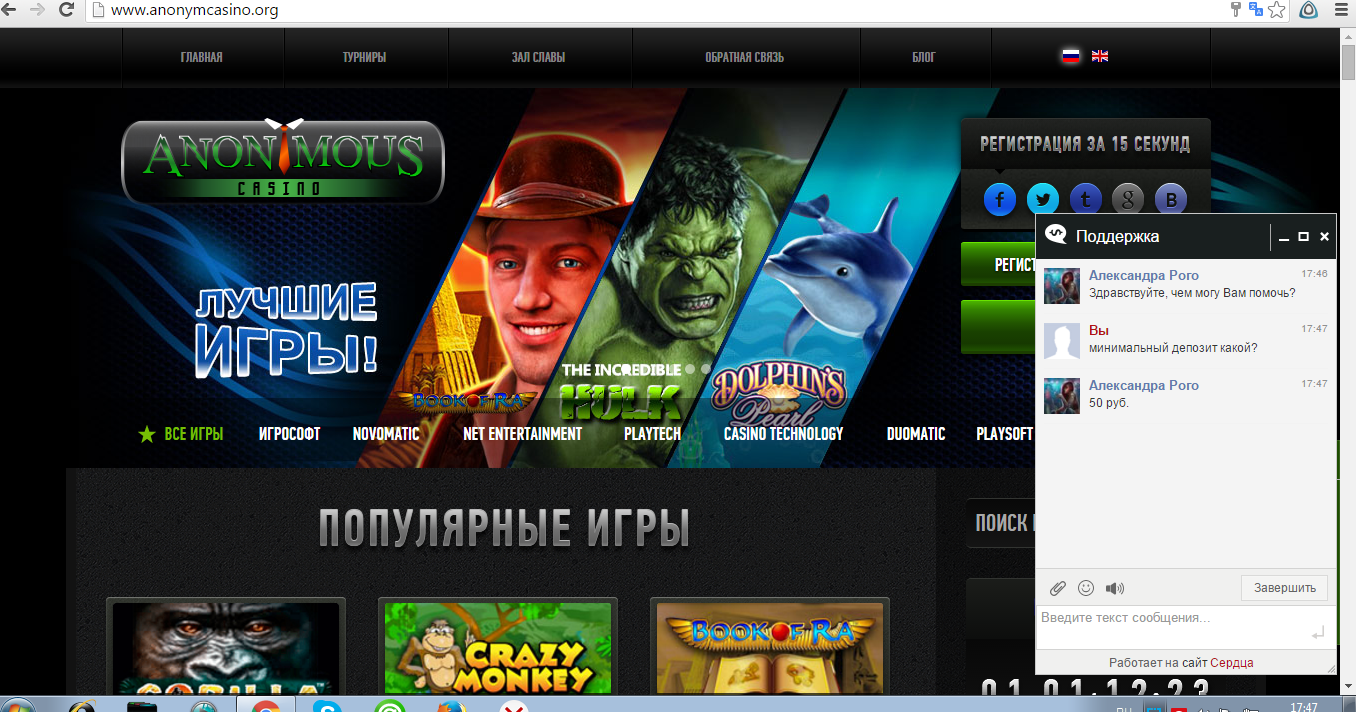 http://www.anonymcasino.org/ сам не играл, так что смотрите сами. Удачи.