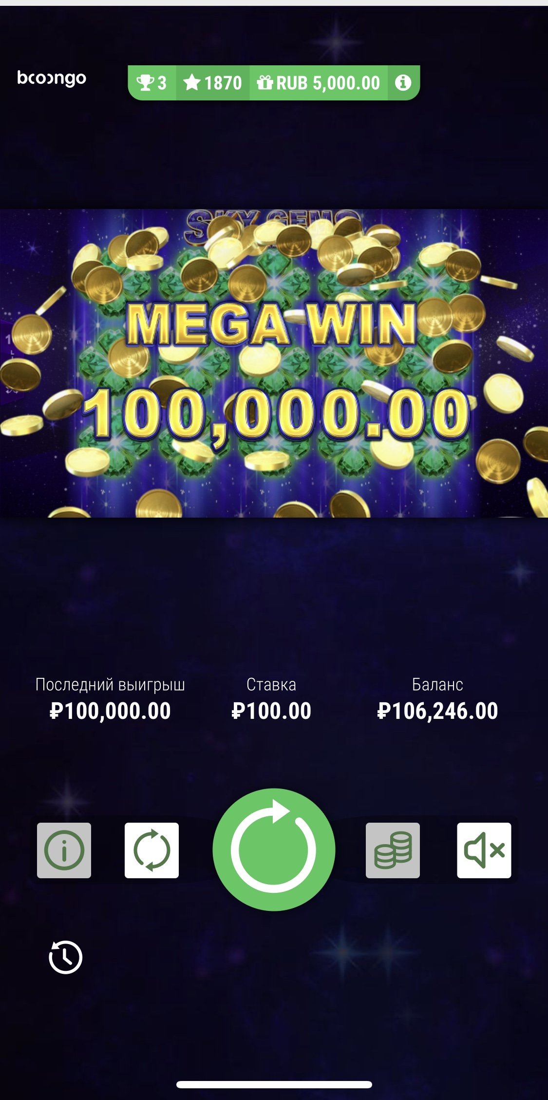 Ты луче спроси какой деп был . )) 1000руб первый и единственный но сначала играл в другом слоте там немного поднялся до 6К руб с мелочью и зашёл в этот Слот и сделал один спин всего и сразу поставило поляну я сразу и не понял думал это заставка слота идет . )) одно плохо что лимиты на вывод 60к руб . Но вывели очень быстро на Сбербанк .)) ну я там ещё поднял