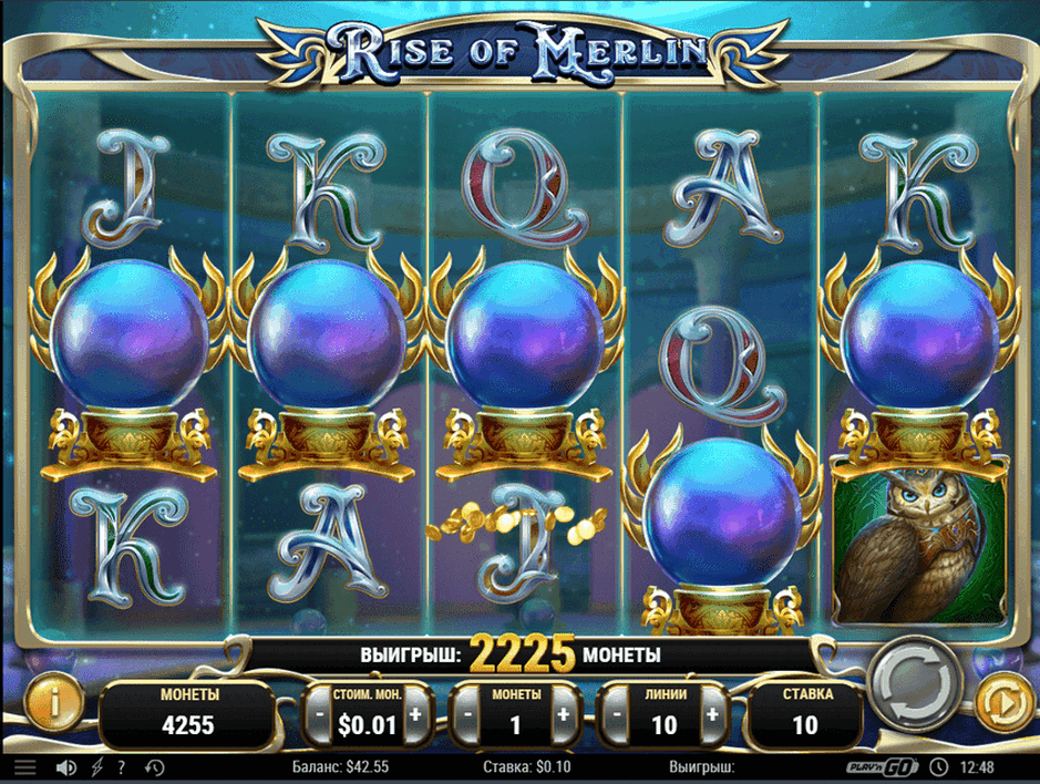 Казино PartyPoker, Rise of Merlin, тут пять скаттеров х200 + по линиям + сама бонуска, всего чуть меньше х400