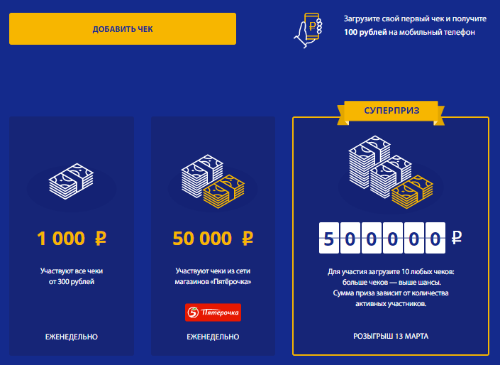 Загрузите свой первый чек и получите 100 рублей на мобильный телефон
