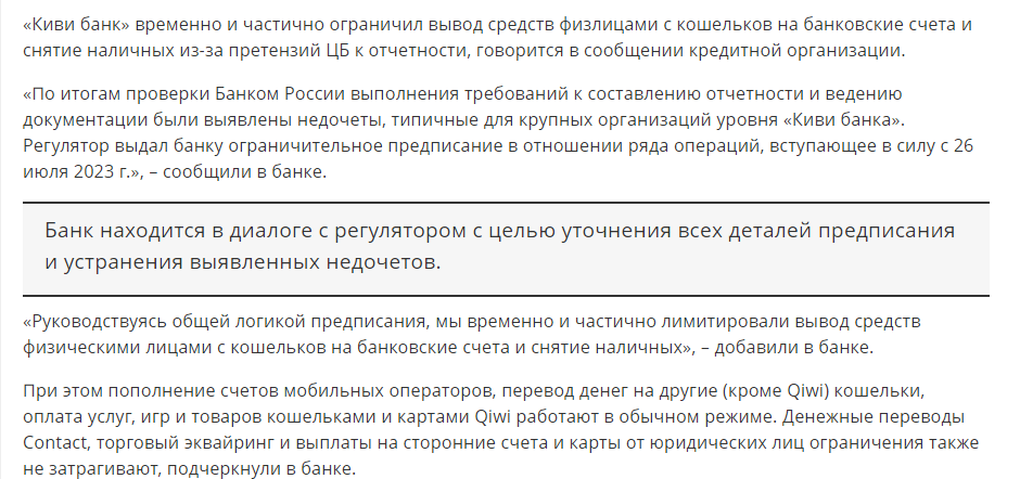 тоже не понимаю, почему многие бегают со словами «все пропало», карта кивячья работает, переводы с киви на киви работают, пиастра пополняется… а остальное можно и временно потерпеть, не?