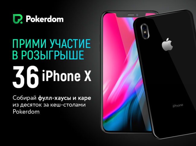 C 30 октября по 31 декабря Pokerdom разыгрывает 36 новеньких iPhone Х среди любителей кэш-игры.
