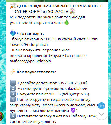 @chopragg Какая халява?! Вот эта что ли? За деп в 5 кило получить 100 фриспинов (100 пудов с отыгрышем за свои) и возможно «выиграть» поздравление от какой-то SOLAZOLA?!)))☺