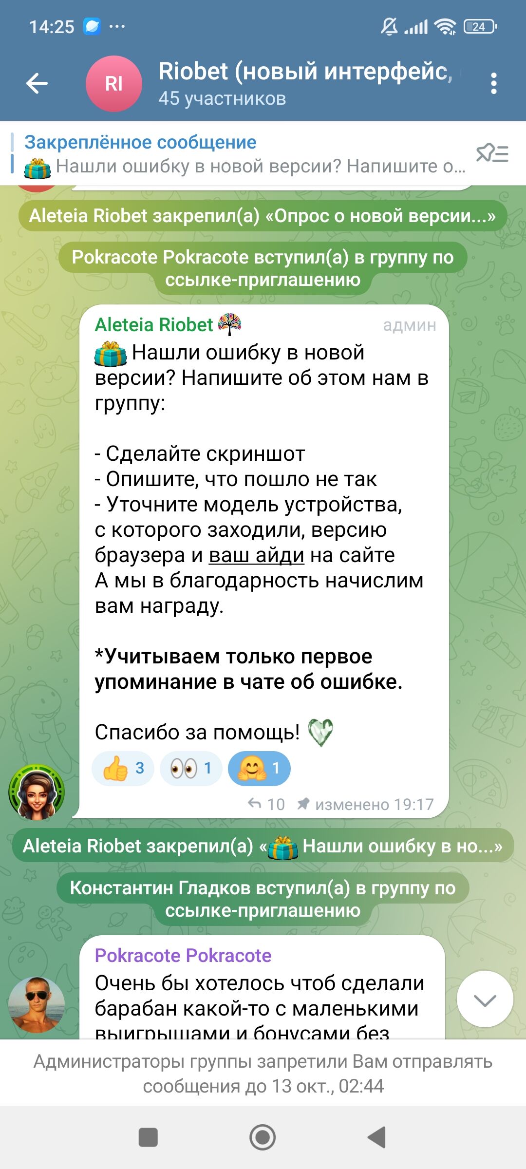 Раскрою тебе тайну — в чатах могут банить хоть супер випа, если он нарушает правила. Я заглянула в эту группу с ошибками, которую ты показал. Для начала они там нигде не написали что выдадут бонус прям щас. Следовательно речь не идет о том что они чтото пообещали и нарушили. Логично? Логично. Далее — ты смотрел в описание этой группы? Там написано что в ней нельзя делать. Если ты им там напоминал про бонусы и спамил не по делу — они тебя могли ограничить тупо чтоб ты не захламлял им рабочий чат. Вот и все. А в целом казино нормальное, ничуть не хуже других, в чем-то и лучше. Опираюсь на свой игровой опыт, а не на чьи-то нервные вопли)))