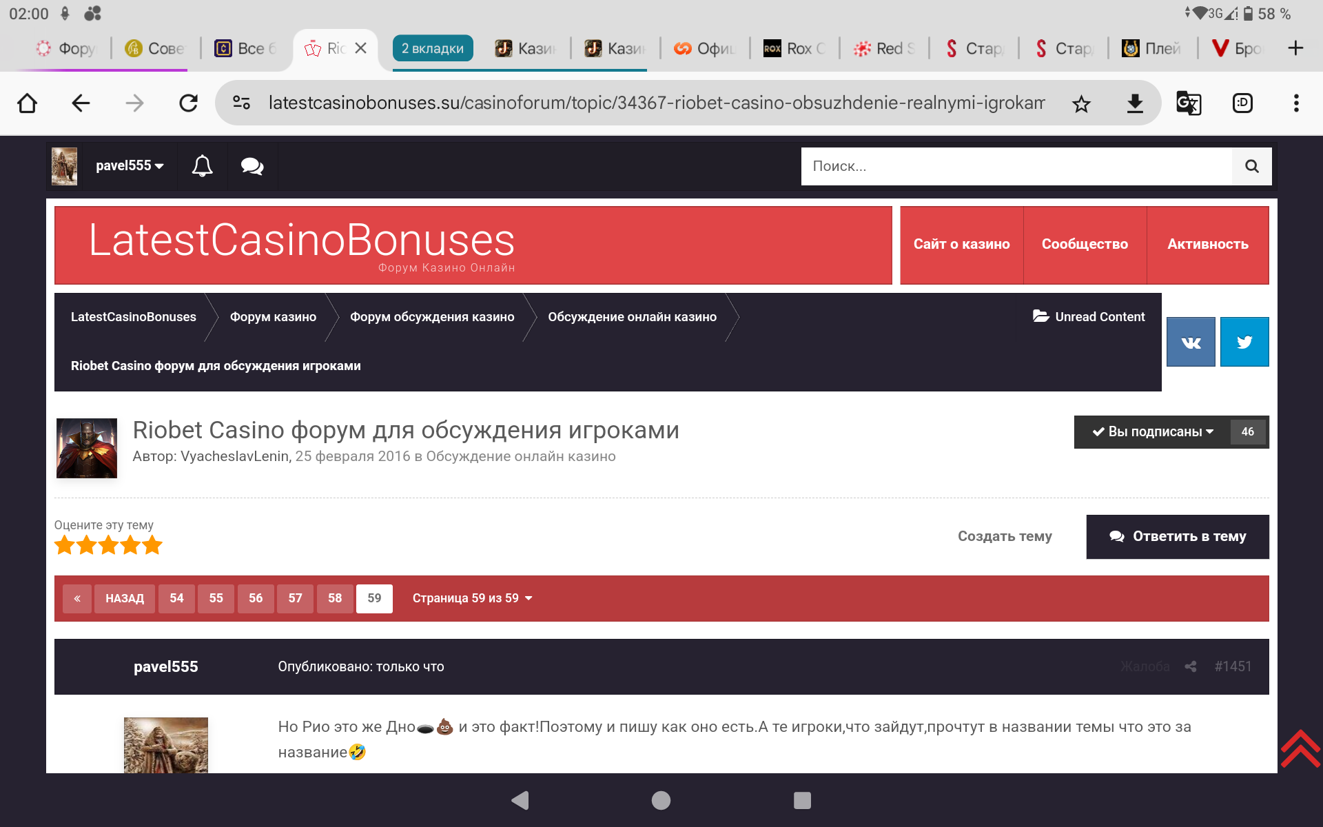 Про этот форум мало кто знает. А вот прежде чем в Riobet региться и начинать там играть Народ смотрит отзывы в Инете. И Инет им выдаст ВСЁ что положено )
