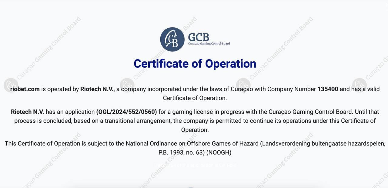 До 1 ноября прошлого года мы были лицензированы Antillephone и их валидатор был активен у нас на сайте. А потом, с 1 ноября, на основании переходного соглашения, изложенного в Национальном указе об азартных играх (Landsverordening op de Kansspelen, PB 2024, № 157), вступил в силу Сертификат деятельности (Certificate of Operation), выданный GCB (уполномоченный орган по азартным играм Кюрасао), который позволяет нам работать легально вплоть до полного перехода на новую лицензию.