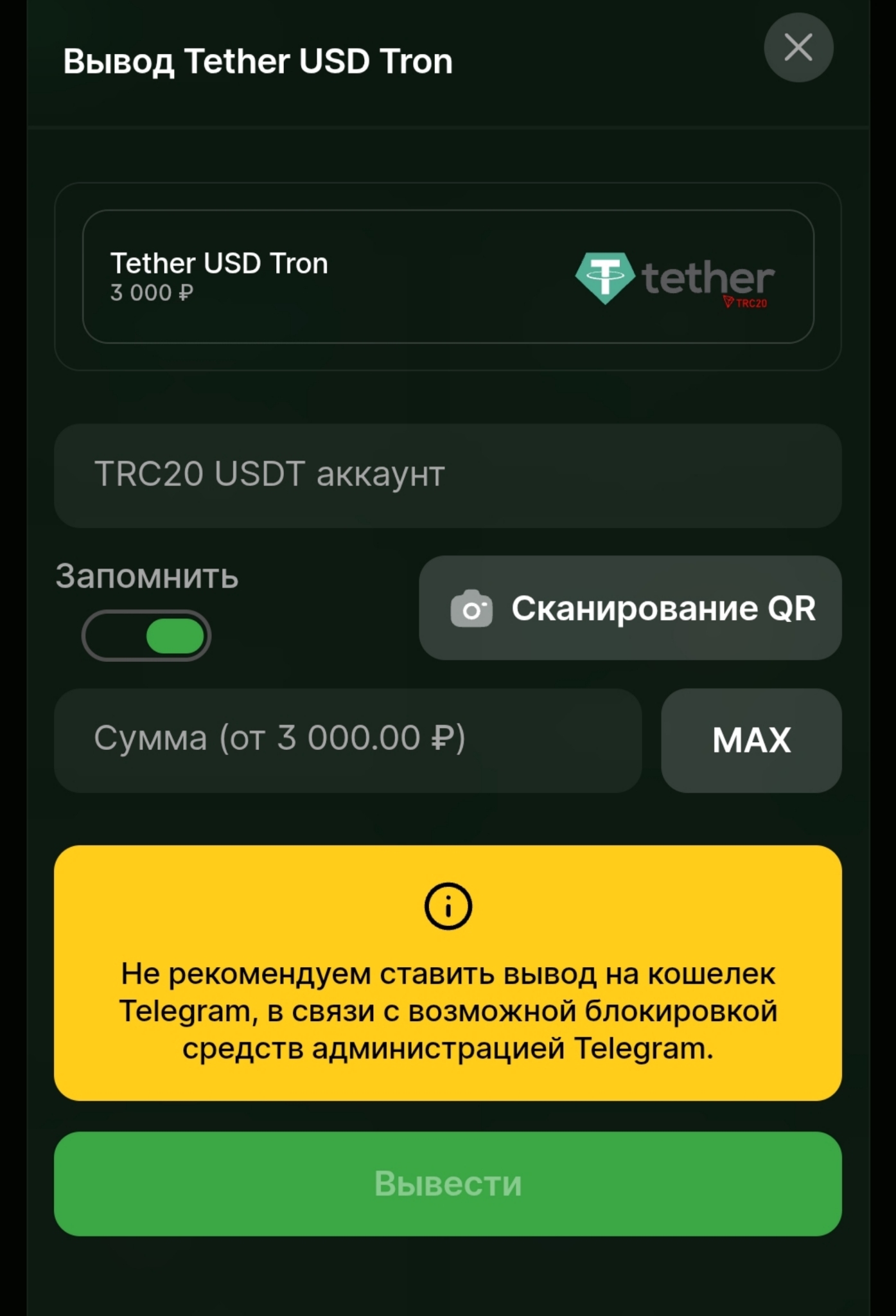 Пожалуйста, свяжитесь со службой поддержки (через чат на сайте или бота клиентской поддержки), чтобы они помогли вам разобраться с этой конкретной ситуацией и предложили альтернативные варианты вывода средств, если у вас нет другого кошелька, не связанного с Telegram Wallet.