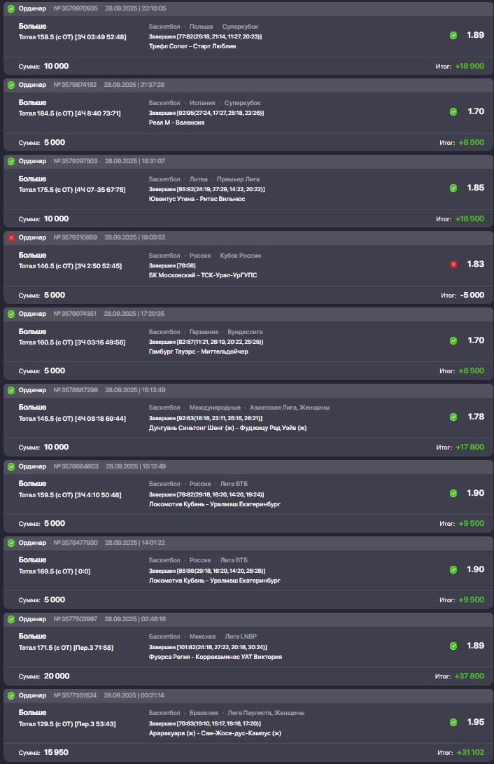 Чекнул матчи на баскете, увидел один подходящий, что тотал пробьют, грузанул 14к все что оставалось на балансе и выиграл. Это была единственная ставка в БК в их казино, ранее я их не делал и в будущем я их делать не буду, почему опишу ниже.