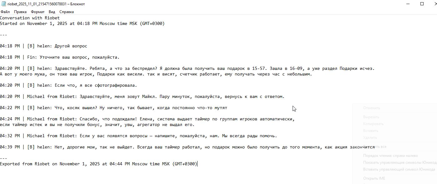 @rioaffiliates Ну что, уважаемый представитель, похоже ваша контора допустила явный косяк. Сейчас расскажу вам и всему сообществу интересную историю. которая произошла со мной сегодня. И мне очень интересно, чем вы сможете это объяснить. Так вот, сегодня я должна была получить ваш очередной подарок в 15-57 ч мск. В 14 часов я заходила, подарок висел в ожидании, таймер работал. Я опоздала ровно на 12 минут. Вошла примерно в 16-09. Раздела Подарки уже не было. Ну ладно, бывает, я подумала, что акция закончилась. А для проверки зашла с компьютера своего мужа (он тоже ваш игрок с отдельным аккаунтом и другим устройством). А не тут-то было. У него Подарки светились синим цветом и таймер указывал, что до следующего подарка ему остается 1 ч 13 минут. Пораженная такой дискриминацией, я написала в вашу поддержку и задала вопрос — как же так? На что, после долгой паузы, мне ваш сотрудник прогнал полную пургу, что, якобы, я не вошла ровно в 15-57 и мой подарок забрал кто-то другой (запись разговора присутствует). На мое справедливое замечание, что обычно раньше можно было забрать приз позже, лишь бы акция не заканчивалась, ответа не последовало. Так что у вас там происходит? Что за выборочное отношение? Мне очень интересно, у кого из игроков во сколько закончилась раздача подарков? Кстати, у мужа подарок провисел еще более часа и исчез ровно за 8 минут до назначенного времени. Так что вы мне скажете по этому поводу? Скриншоты со своего компа и с компьютера мужа прилагаю. Вы бы хоть как-то там поответственнее относились к тому, что вы там мутите. Разные игроки, разные устройства. но IP — то один. Непрофессионально, господа. Если уж взялись лохов стричь, то просчитывайте варианты. Мне ваши подарки, в общем-то, не тарахтели, от них только стресс и убыток. Дело в принципе.